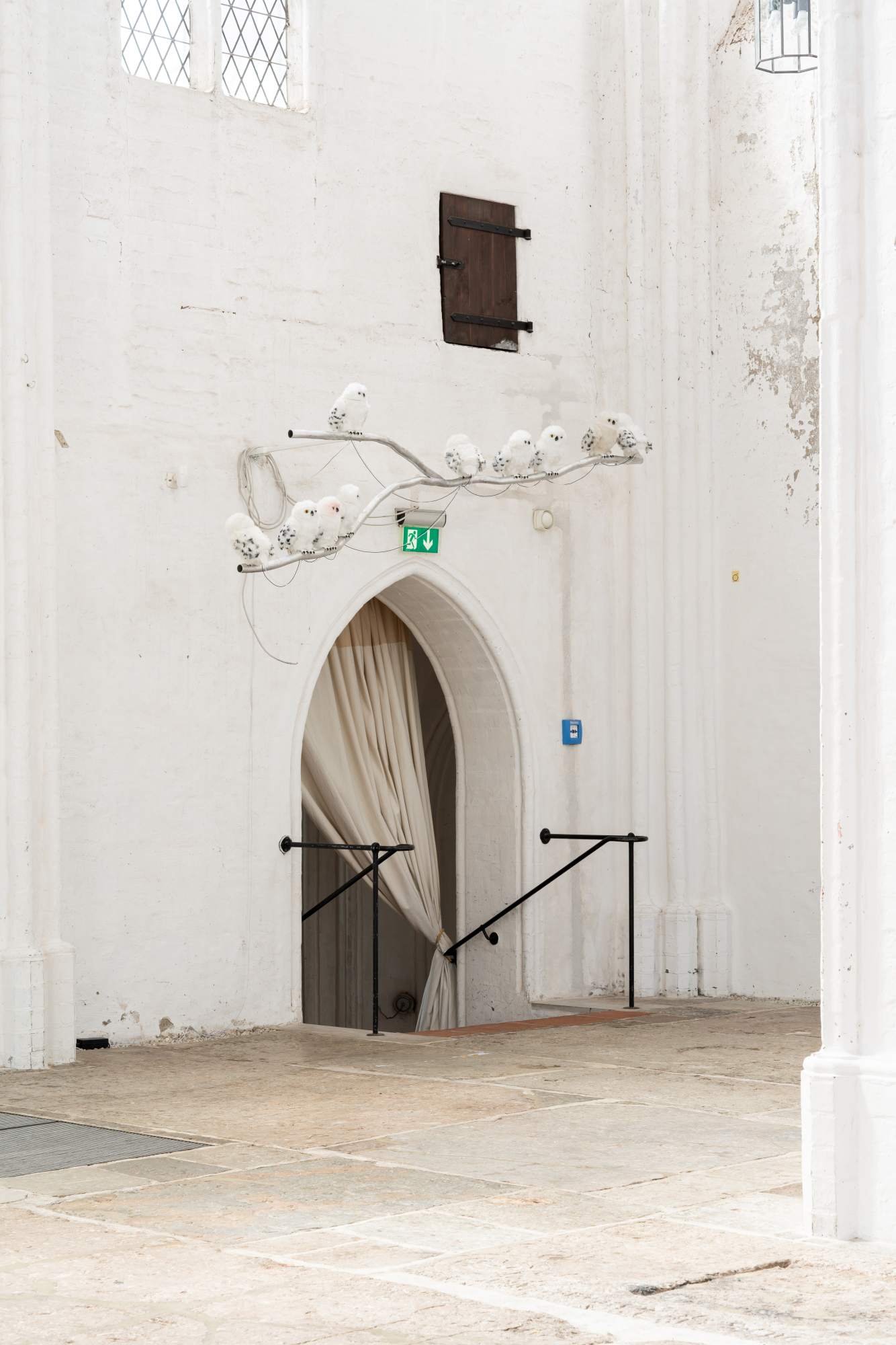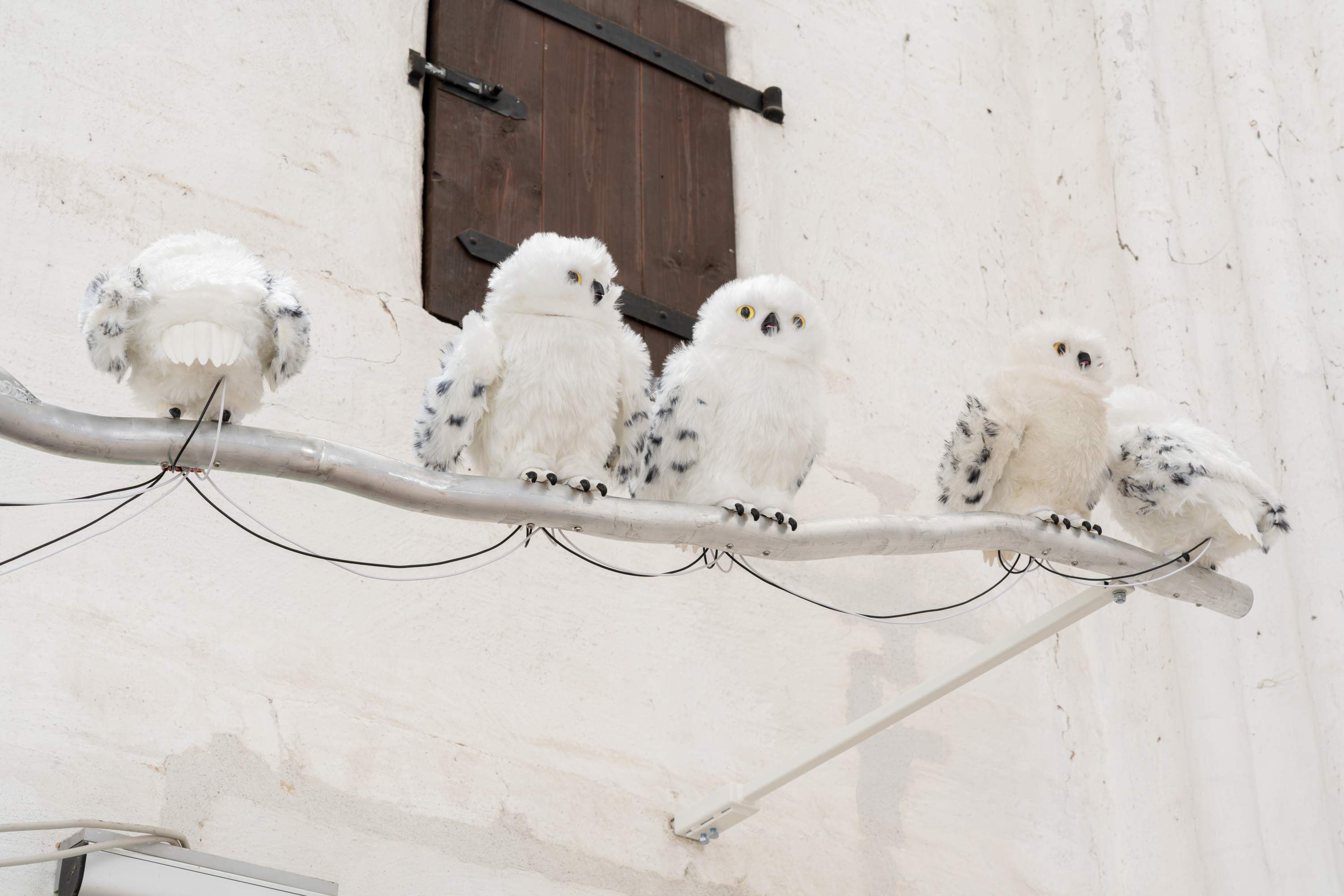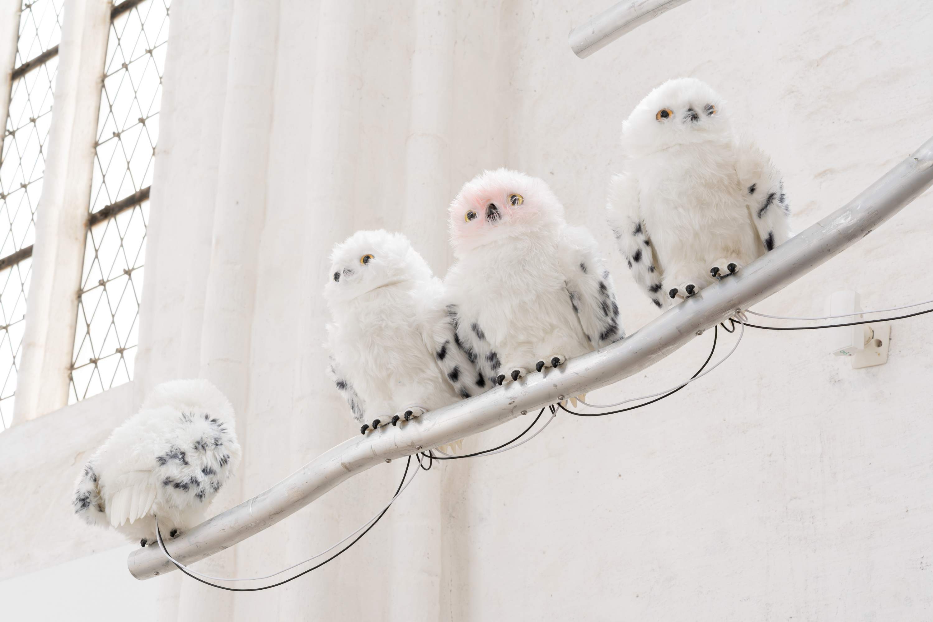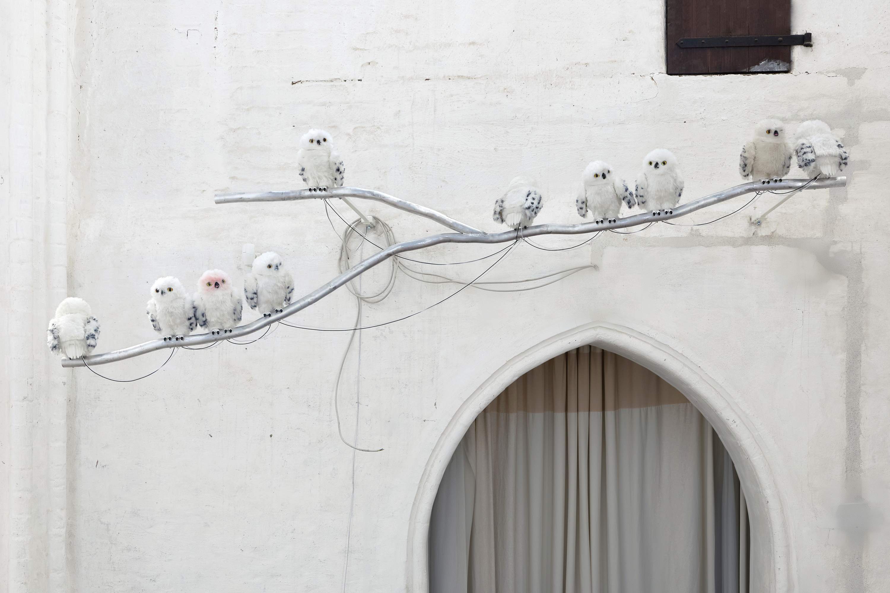 Gerrit Frohne-Brinkmann Snowy Owl Sanctuary 2025 Aluminium, steel, paint, robotic toys, controller, plastic, cable, various materials 92 × 300 × 93 cm 36 1/4 × 118 1/8 × 36 5/8 inches