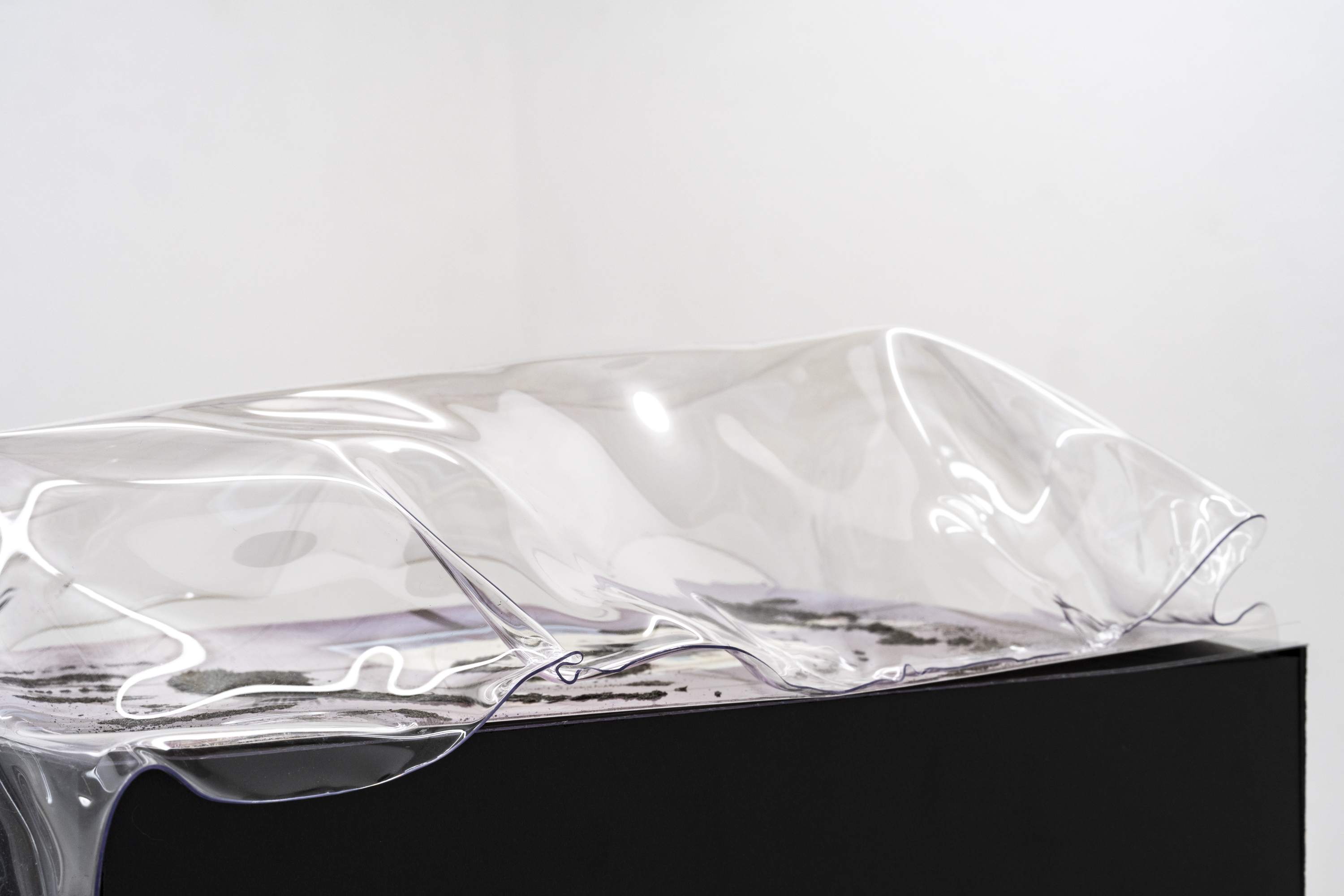Irina Jasnwoski Pascual Fillings (1 - 4) 2025 Iron fillings, photograph, PVC, neodynium magnets, 12V DC motor, conduit wire, polymer plastic, foam-board, electricity each 120 × 20 × 30 cm 47 1/4 × 7 7/8 × 11 3/4 inches
