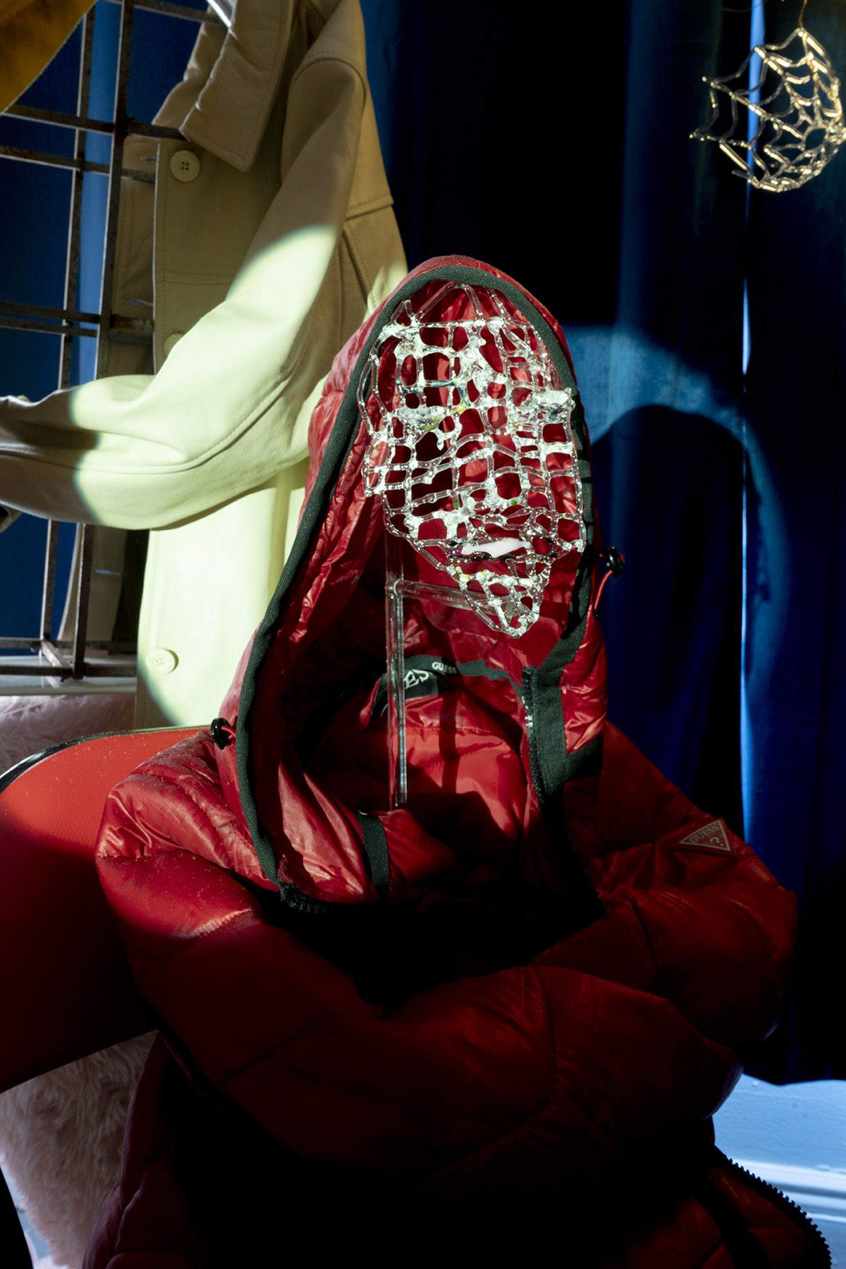 Irina Jasnowski Pascual Glass Guess 2021 Jacket, borosilicate glass, chair 48 × 48 × 107 cm 18 7/8 × 18 7/8 × 42 1/8 inches