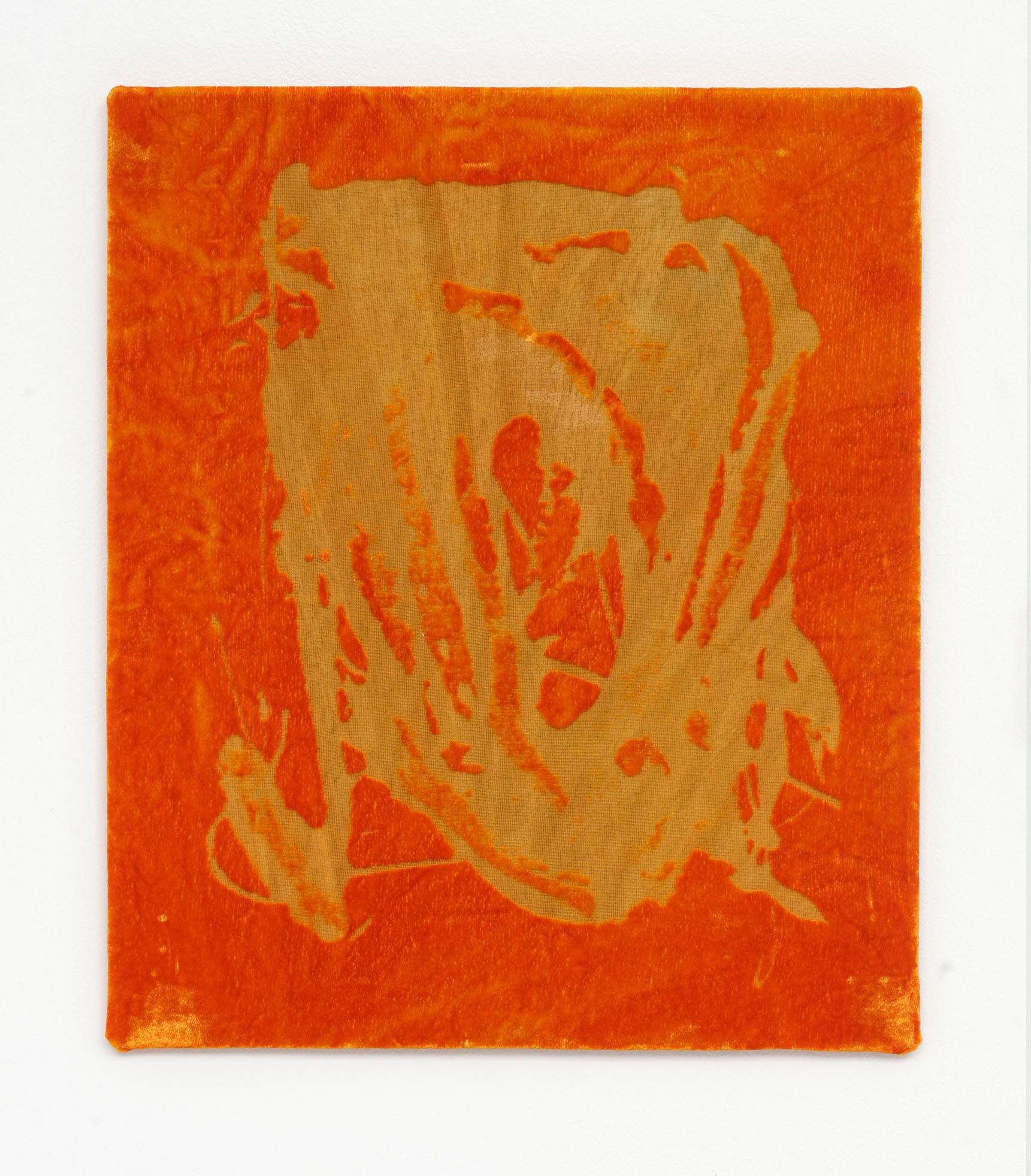 Josefine Reisch Ardente 2018 velvet devore, oil paint, pigment, gesso, beer, canvas board Edition of 20 + 5AP 30 × 25 cm 11 3/4 × 9 7/8 inches