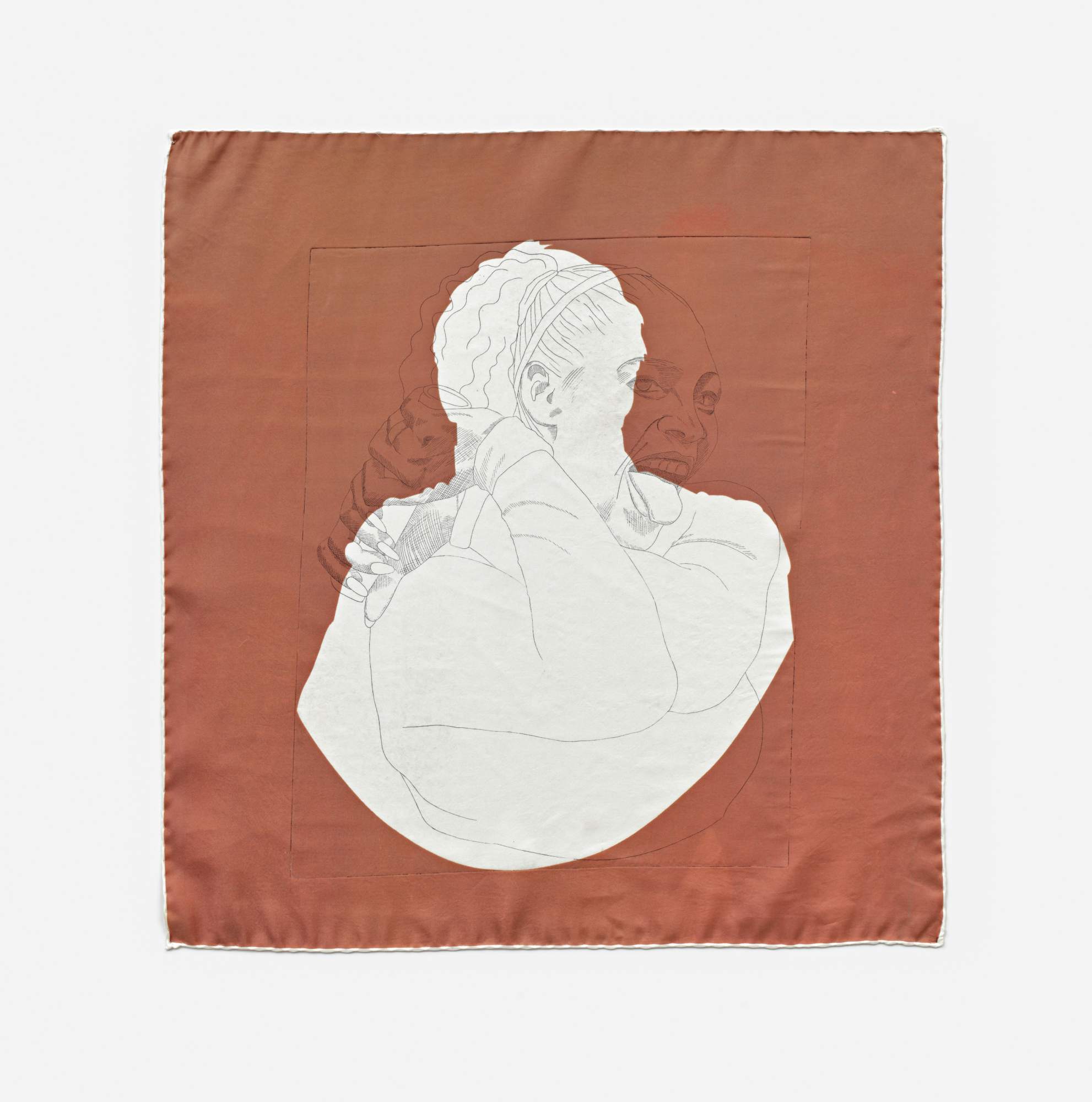 Josefine Reisch Napoleon and Serena 2020 screen print and etching on silk 72 × 68 × 3 cm 28 3/8 × 26 3/4 × 1 1/8 inches