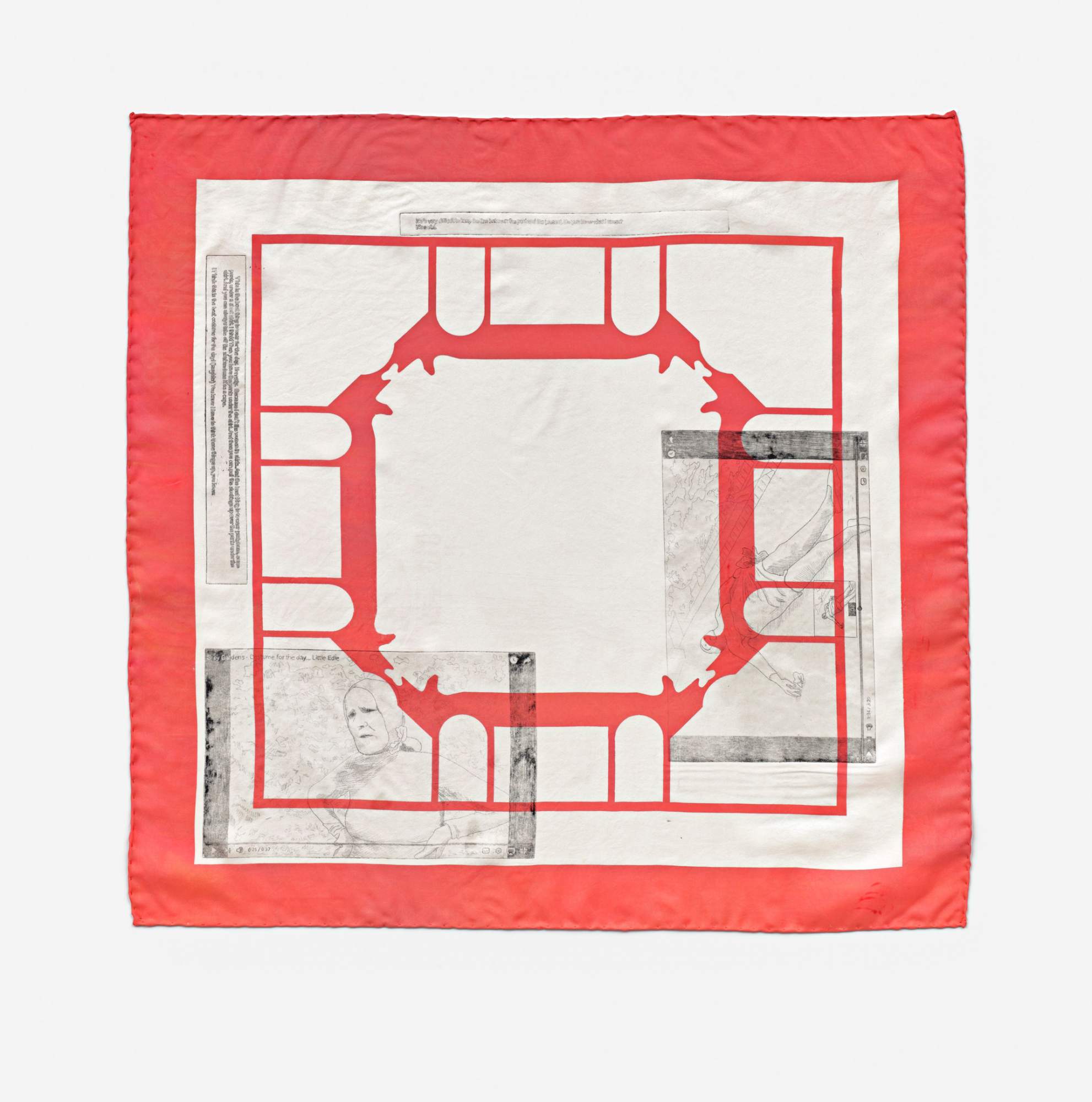 Josefine Reisch Muchoir D'Instruction (Hello! Bülent and Serena) 2020 screen print and etching on silk 80 × 74 × 3 cm 31 1/2 × 29 1/8 × 1 1/8 inches