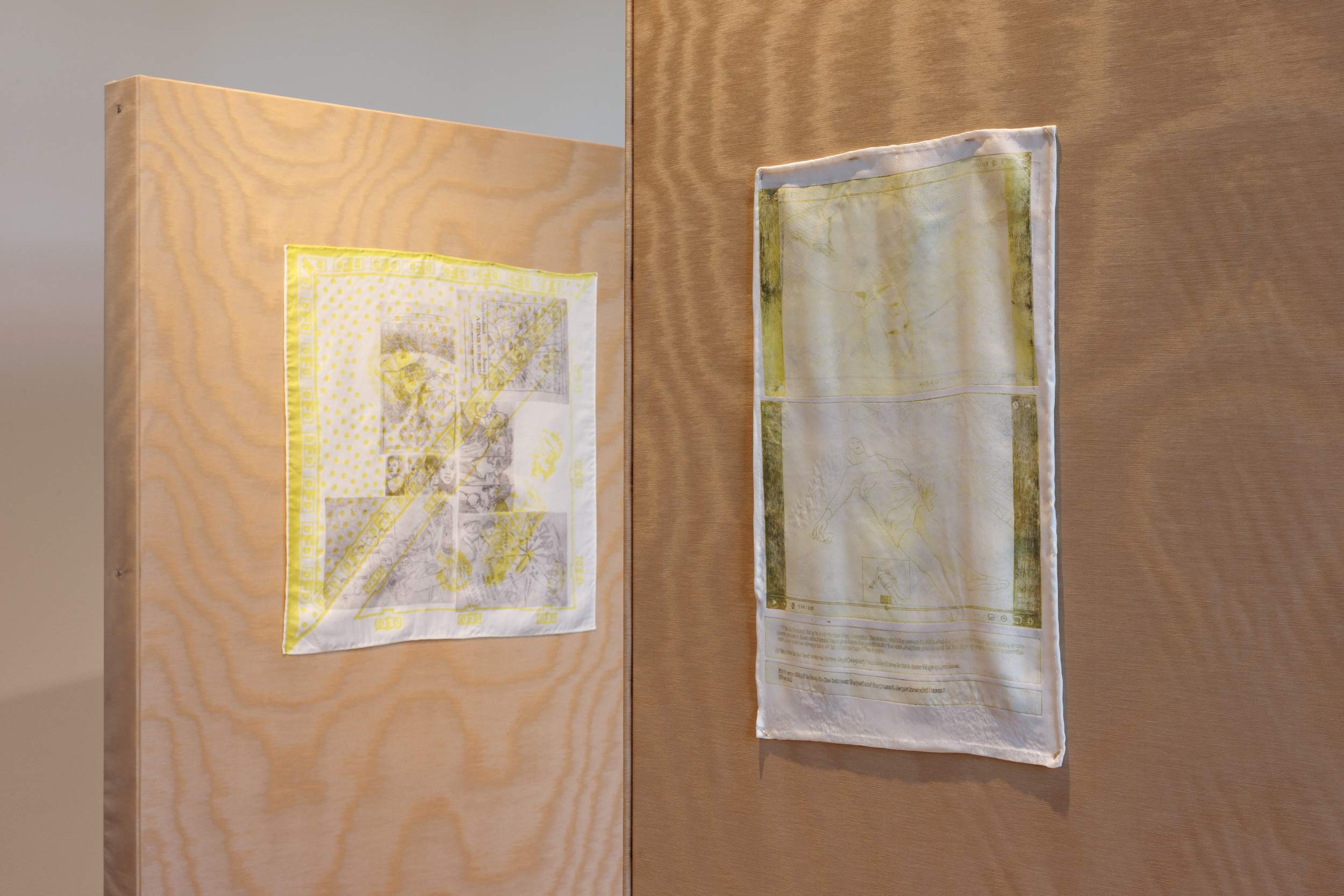 Josefine Reisch Mouchoir d’Instruction (…do you know what I mean?) 2022 Screen print and etching on silk 79 × 79 cm 31 1/8 × 31 1/8 inches