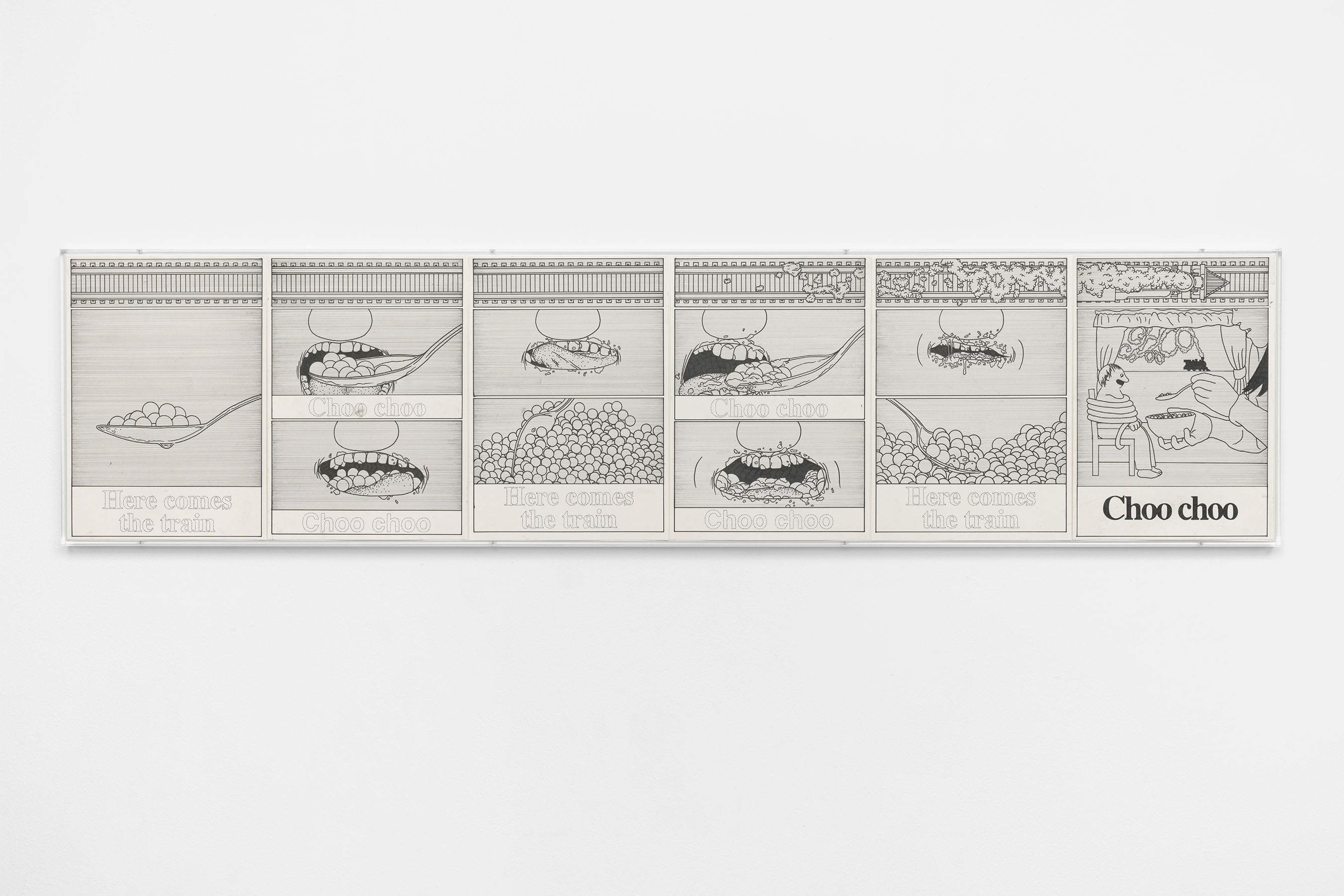 Sebastian Jefford Choo choo, choo choo 2025 Pen on paper 127 × 31 cm (framed) × 12 1/4 inches (framed)