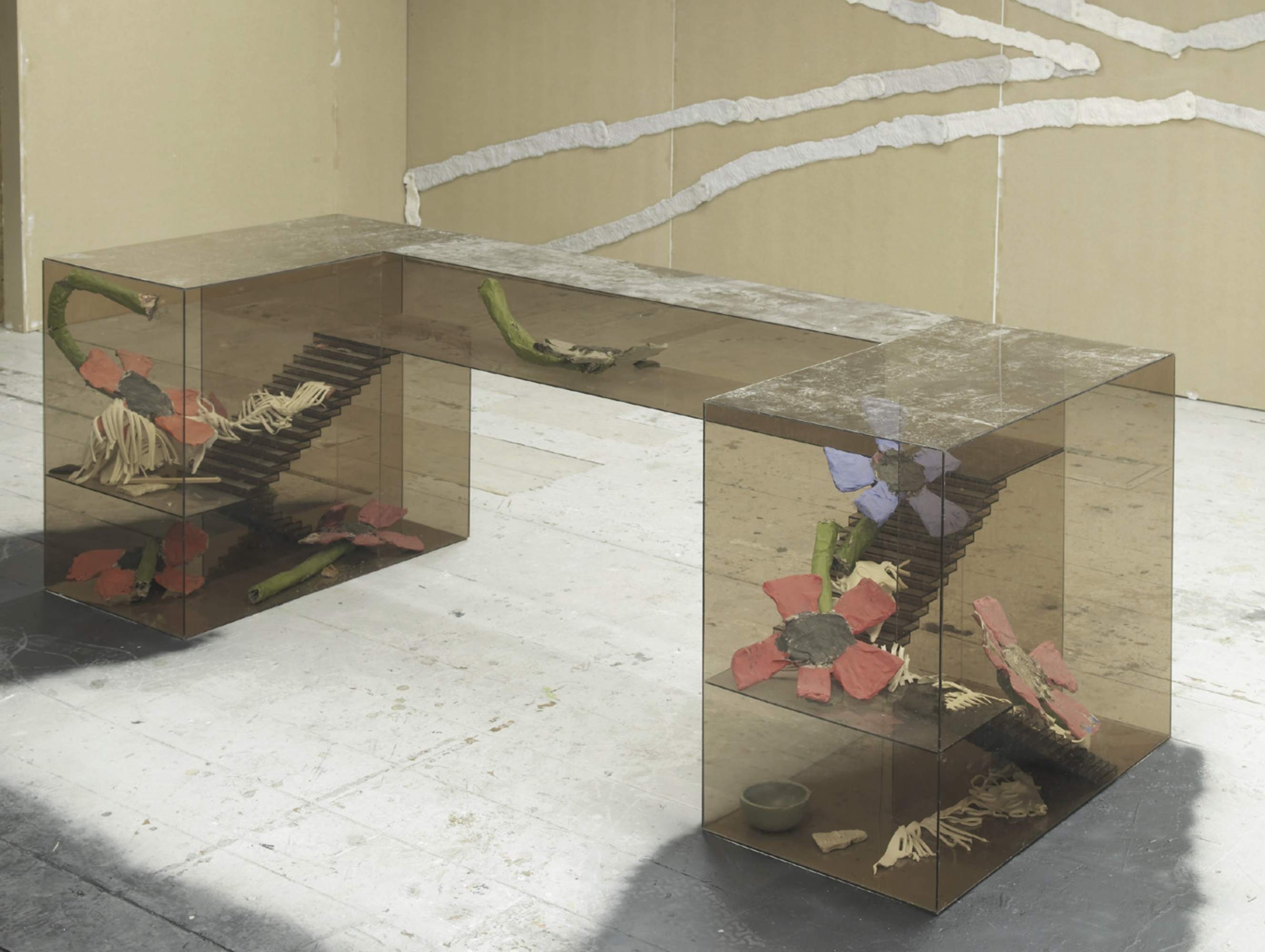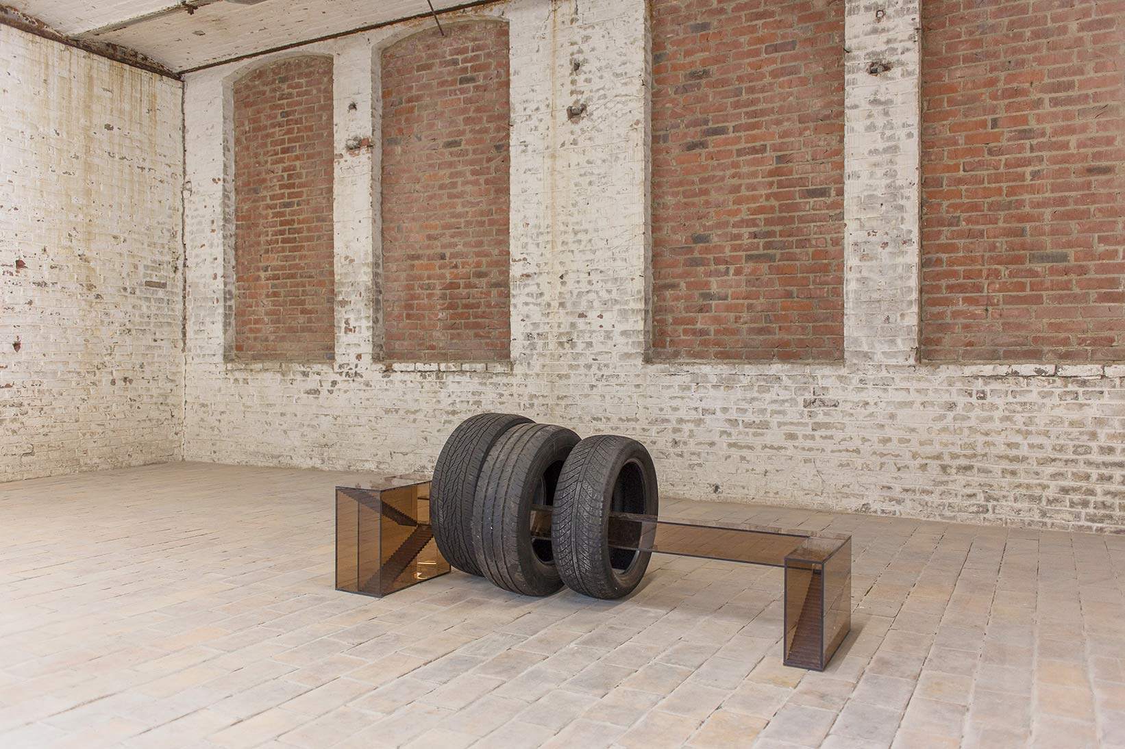 Sebastian Jefford Looping 2021 Perspex, used tyres, cereal, epoxy resin, dust