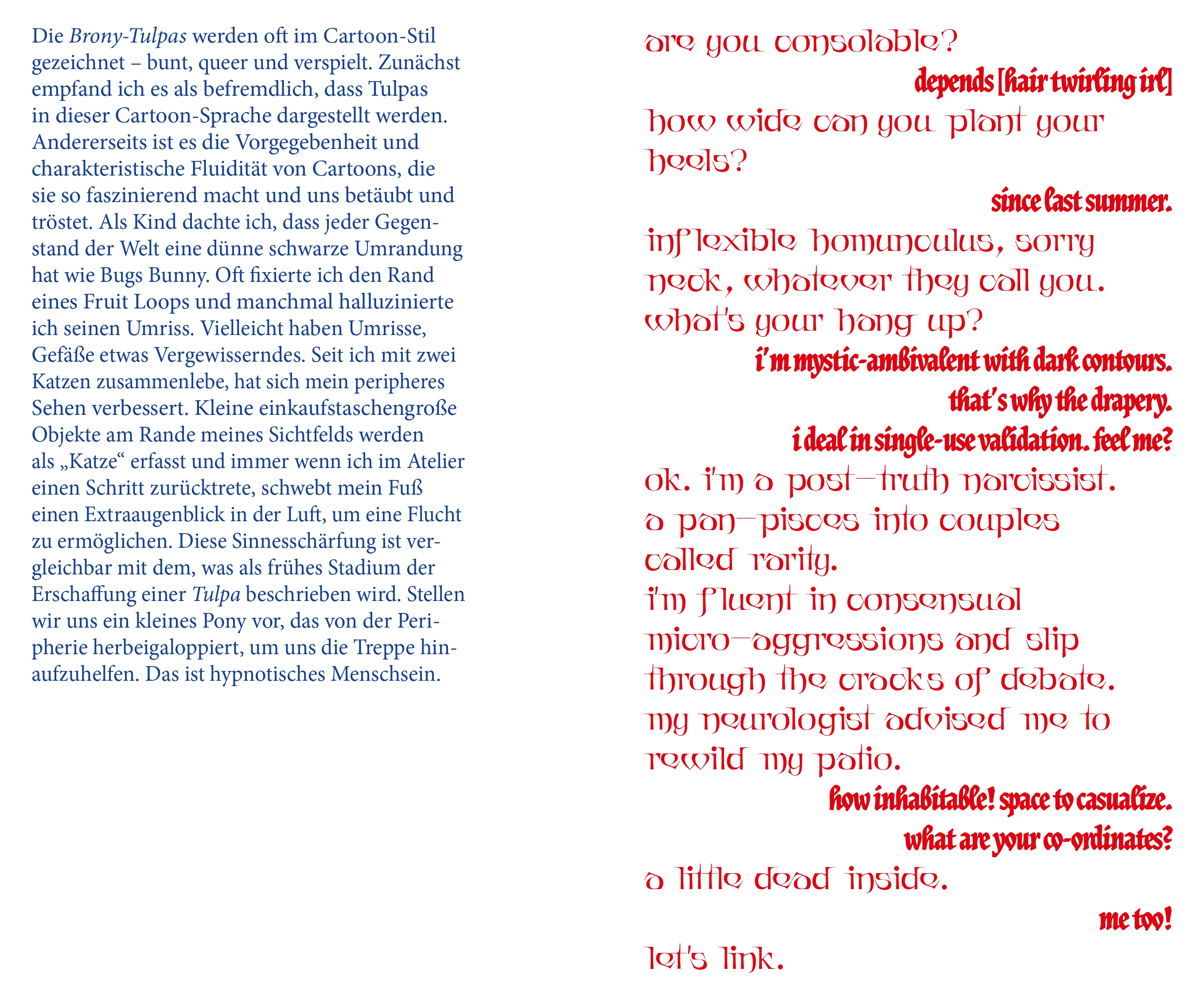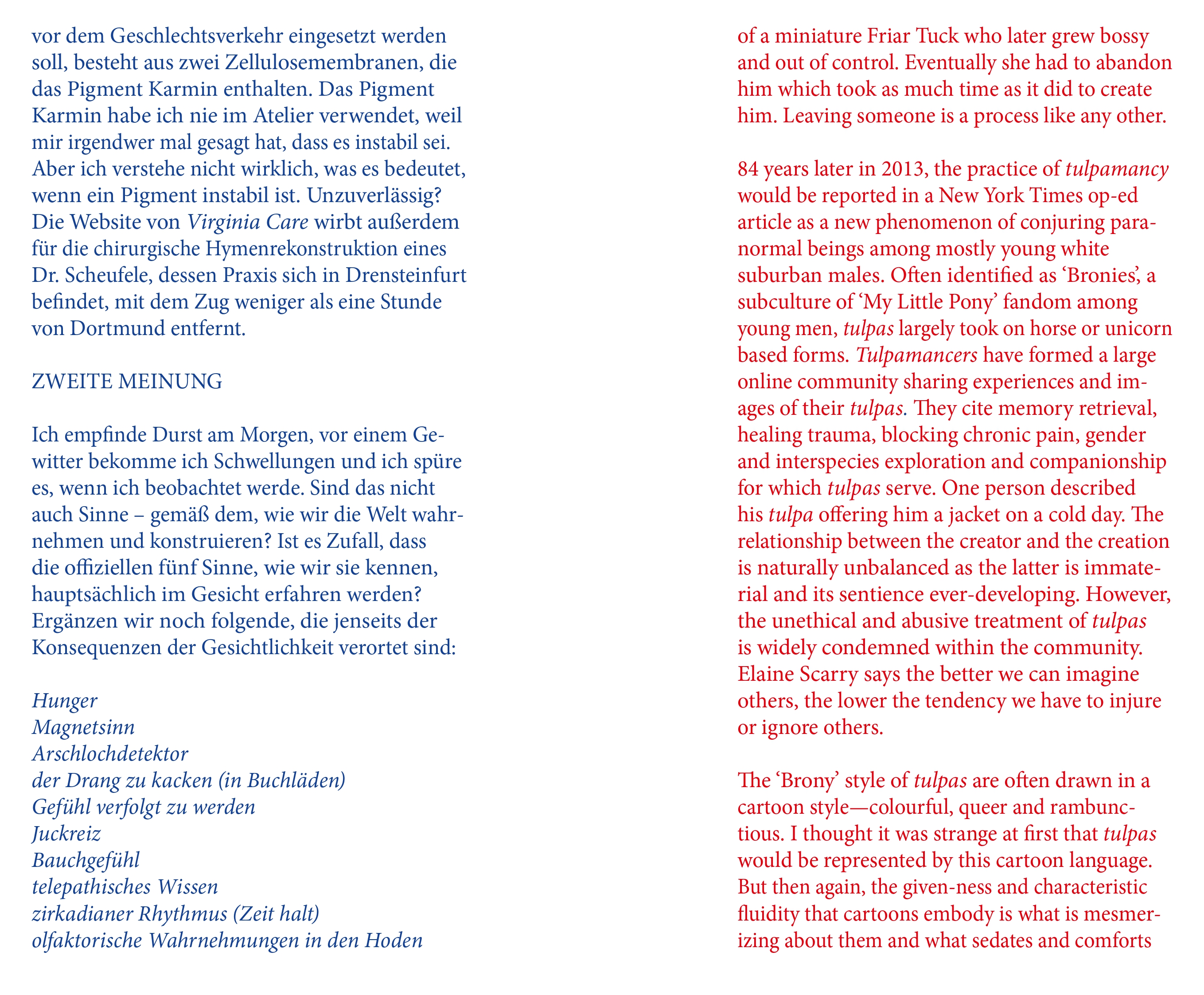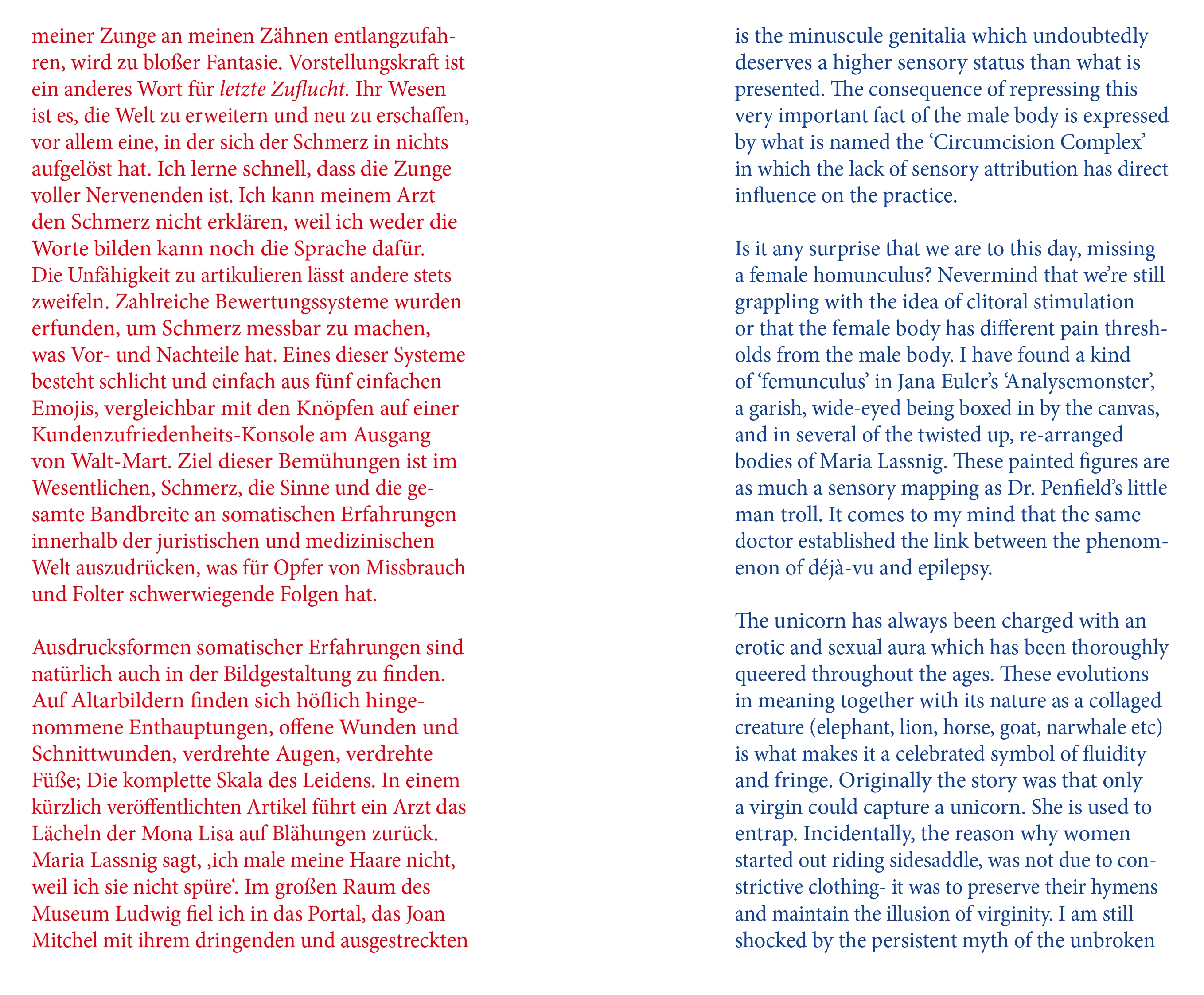 In this edition of MEDIA, we present a part of Alison Yip’s publication accompanying her solo exhibition Bare Heel Country at Dortmunder Kunstverein curated by Rebekka Seubert. With her writings and a poem she lets us into her thoughts, musing about vulnerability, sensations, and, of course, unicorns.