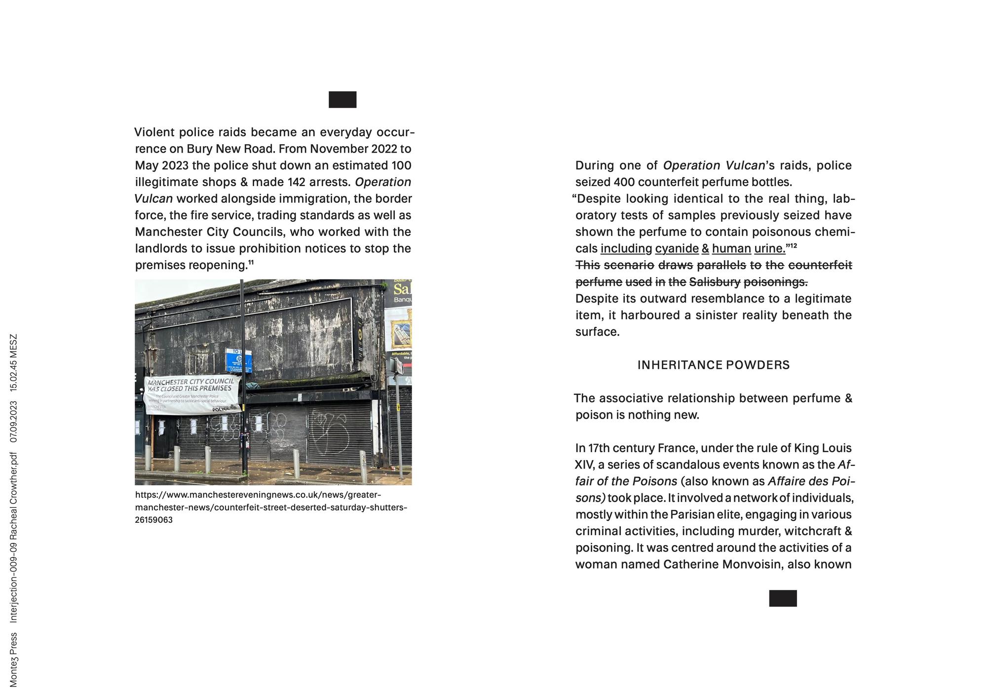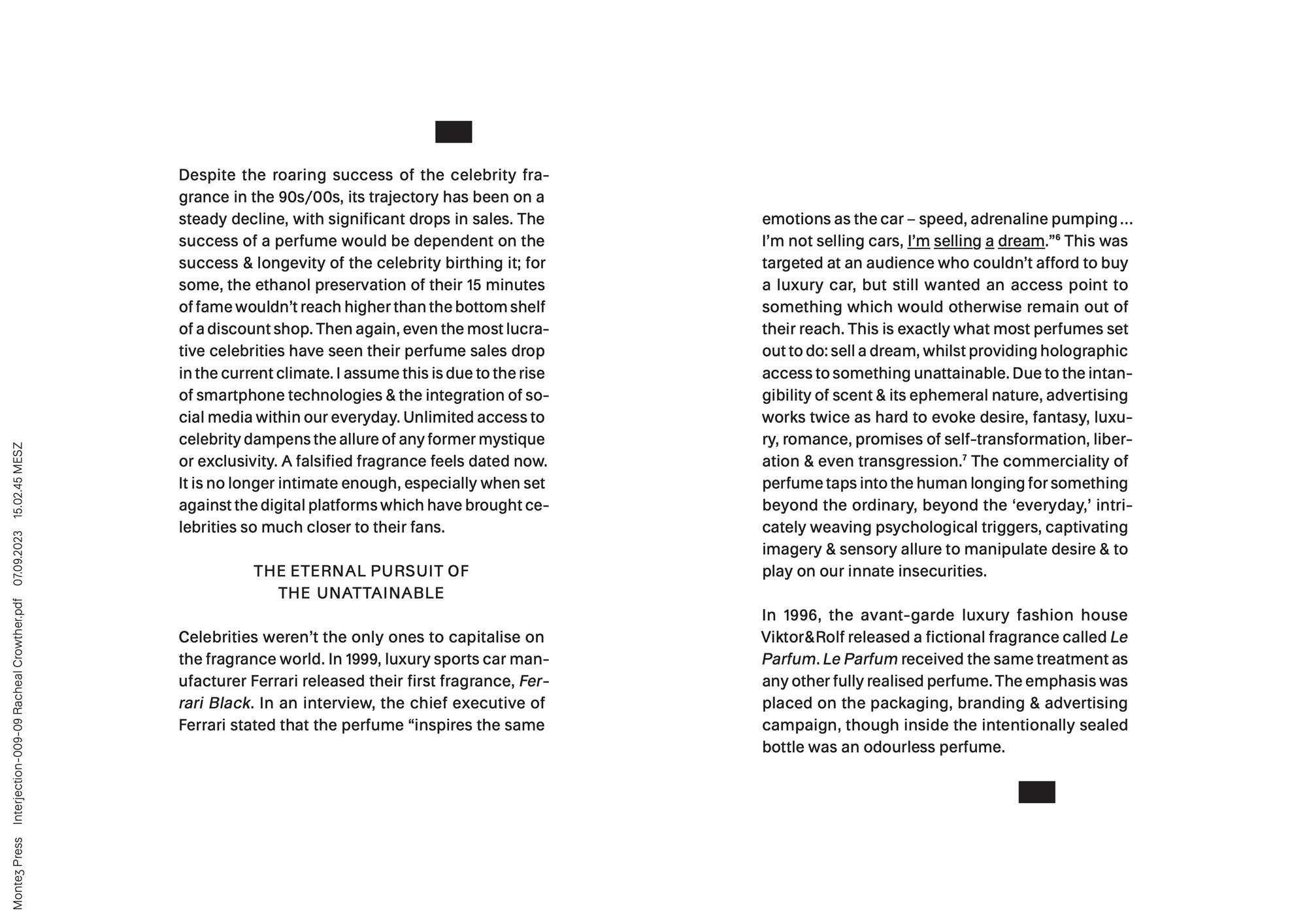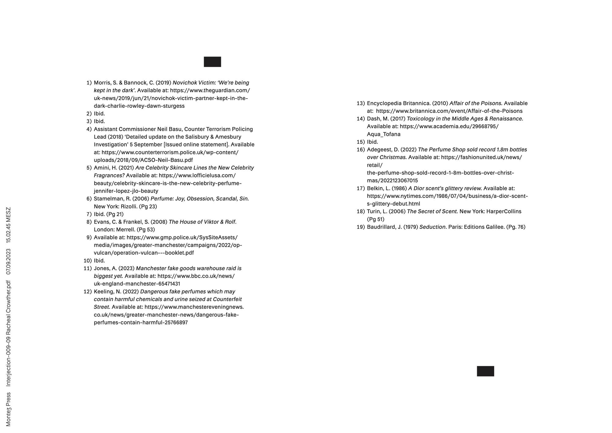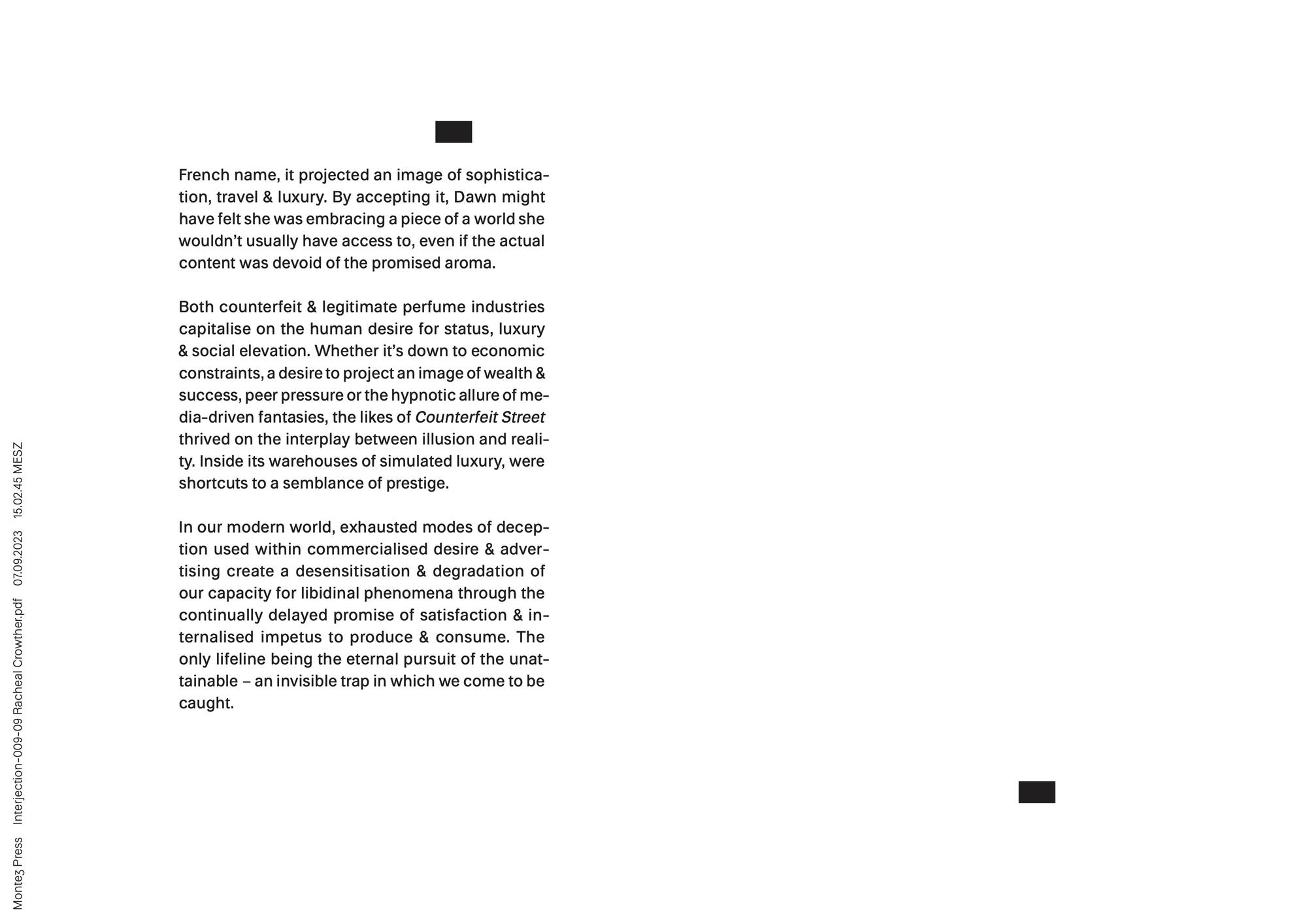 In this edition of MEDIA, we present The Eternal Pursuit of the Unattainable, an essay by Racheal Crowther commissioned by Interjection Calendar 009 (September 2023) and published by Montez Press. Crowther writes about poison, counterfeits & the psychology of perfume.